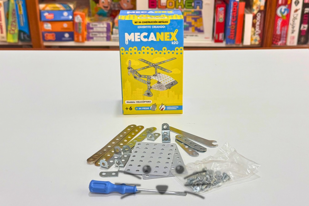Set de Construcción, con piezas metálicas y herramientas verdaderas, para armar un helicóptero. Un juego que despierta el ingenio y estimula la creatividad. Contiene 64 piezas. Coleccionables. Edad Sugerida: a partir de 6 años.