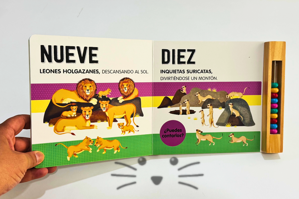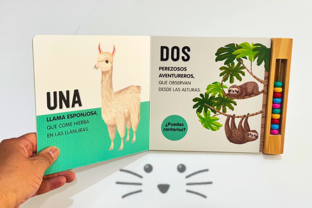 Un hermoso libro para aprender los números y a contar junto a los animales. Desliza las cuentas de tu ábaco hacia arriba y hacia abajo para contar todos los simpáticos animalitos que encontrarás en este libro, desde la esponjosa llama hasta las traviesas suricatas. El libro combina el aprendizaje de números y animales con una actividad interactiva de deslizamiento a través del ábaco que viene incluido en su lateral. Medidas: 18 x 21 cm. Páginas: 10. Tapa y hojas duras. Letra mayúscula.