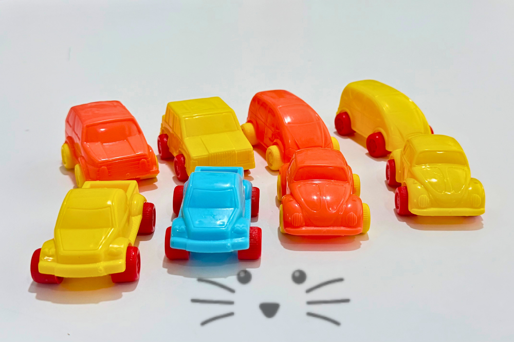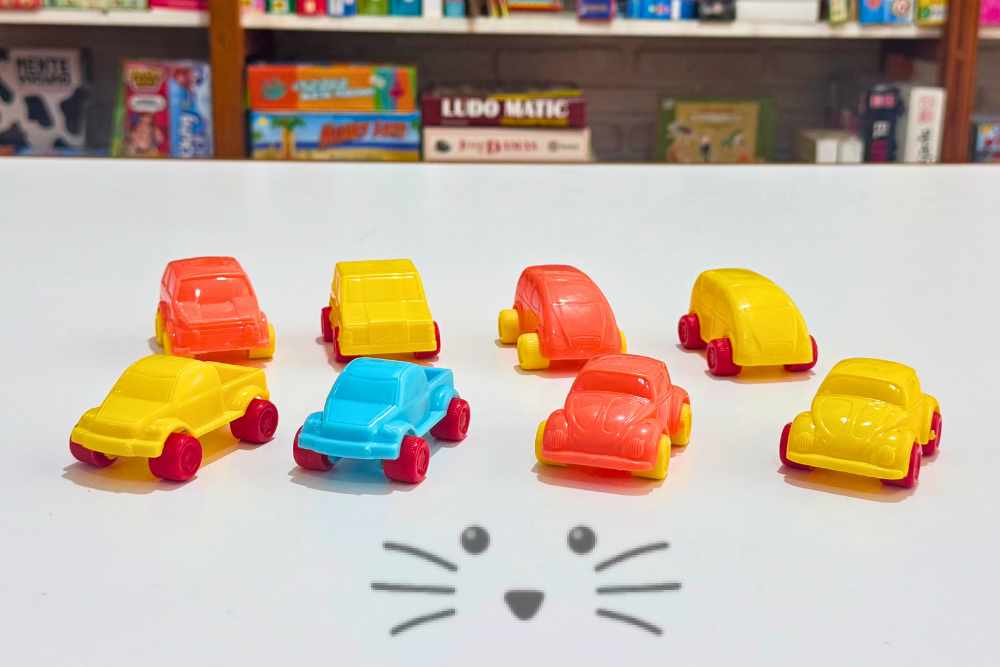 Fabricados en plástico duro, tipo piluquis. No tóxicos. Cuentan con un eje de metal que garantiza su resistencia y durabilidad. Medidas: 7 cm de largo x 5 cm de ancho (de rueda a rueda) x 3 cm de alto. Edad sugerida: a partir de 2 años