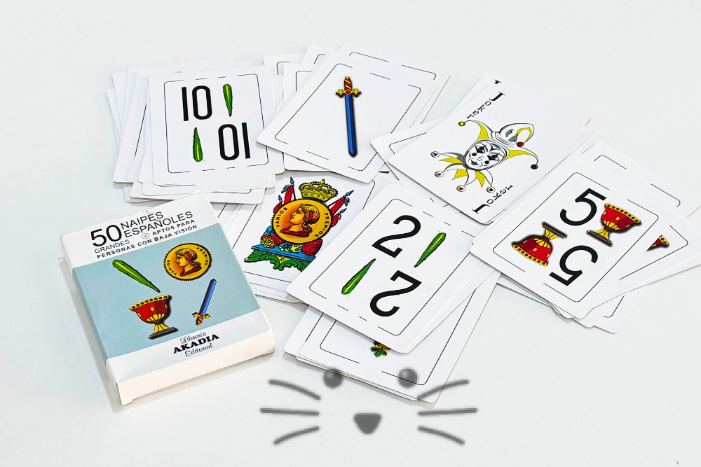 Disfruta del juego con los Naipes Españoles Grandes diseñados para Baja Visión. Este mazo de cartas está especialmente creado para personas con baja visión, facilitando la identificación de los números y los palos gracias a su tamaño ampliado y a su diseño claro y contrastante. Perfecto para juegos de mesa familiares, reuniones con amigos o cualquier momento de entretenimiento, asegurando que todos puedan participar cómodamente.