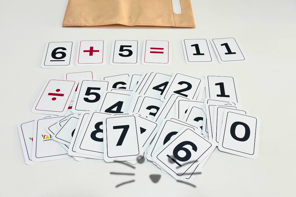 Juego de naipes plastificados, con números del 0 al 9, comodines y naipes de signos matemáticos. Es un juego para 2 a 4 jugadores, a partir de los 7 años e ideal para estimulación cognitiva de personas adultas mayores.