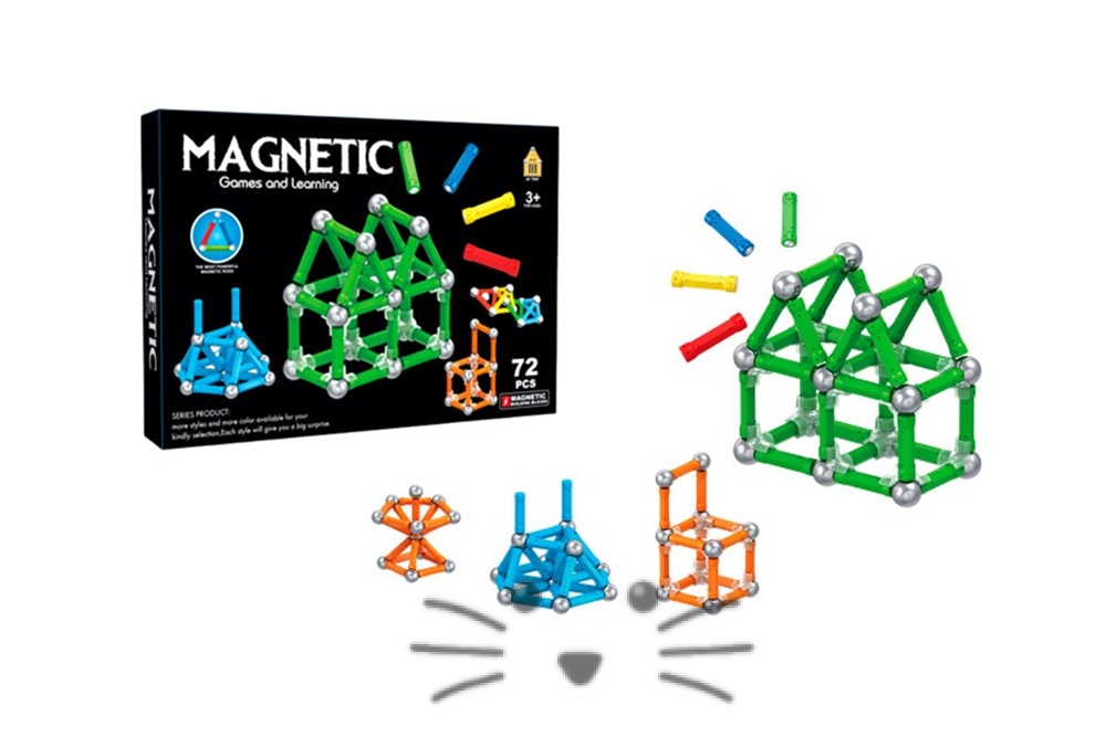 ¡Diversión Garantizada! Contiene 72 piezas. Estimula el pensamiento constructivo, espacial y abstracto. Favorece la creatividad. Ayuda a ejercitar la habilidad manual. Experimenta la fuerza del magnetismo. Construye libremente. Edad sugerida: a partir de 3 años.