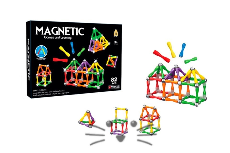 ¡Diversión Garantizada! Contiene 82 piezas. Estimula el pensamiento constructivo, espacial y abstracto. Favorece la creatividad. Ayuda a ejercitar la habilidad manual. Experimenta la fuerza del magnetismo. Construye libremente. Edad sugerida: a partir de 3 años.