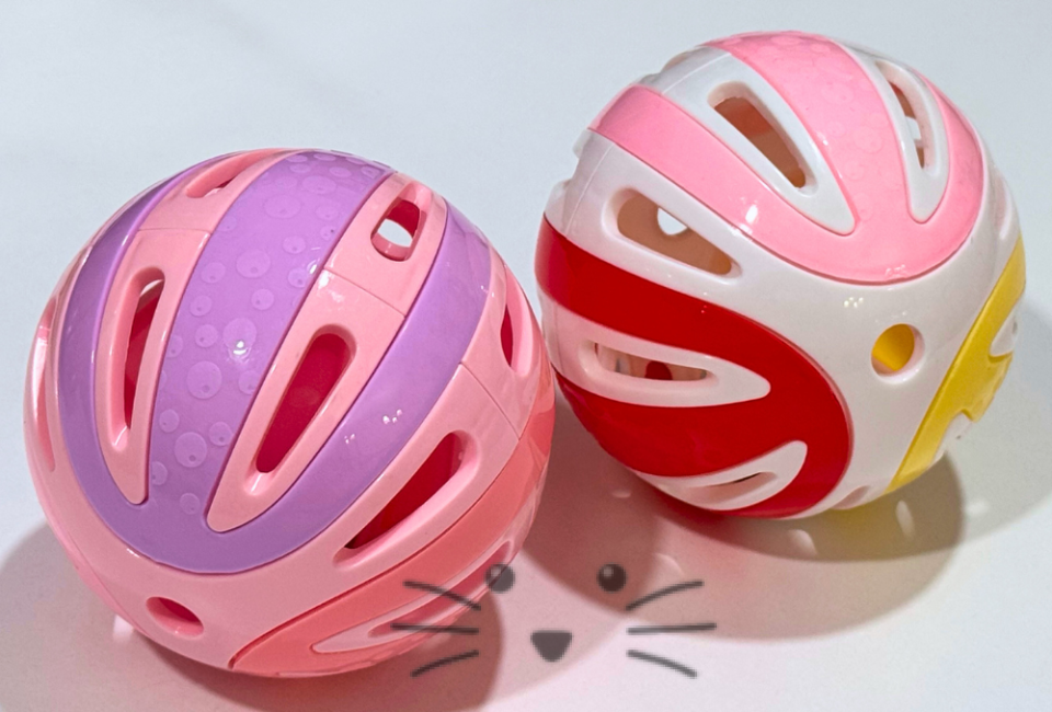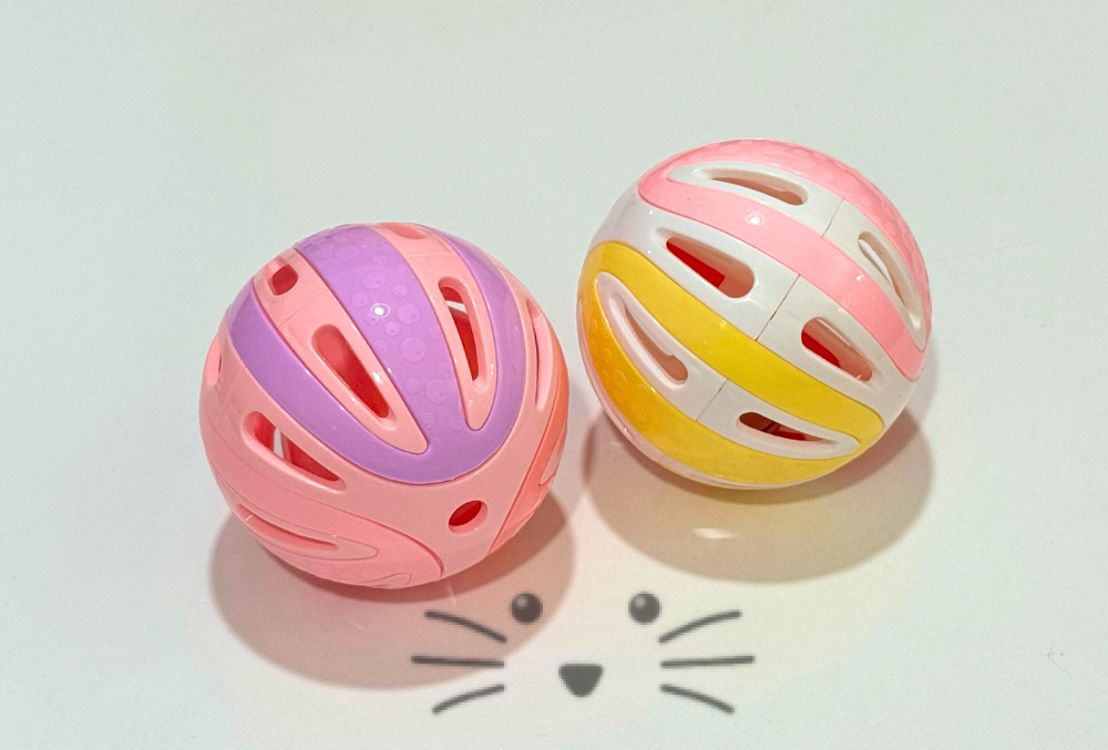 Set de 2 esferas con cascabel. Incentiva la capacidad visual y auditiva del niño. Medidas: 10 cm de diámetro. A partir de 9 meses en adelante.