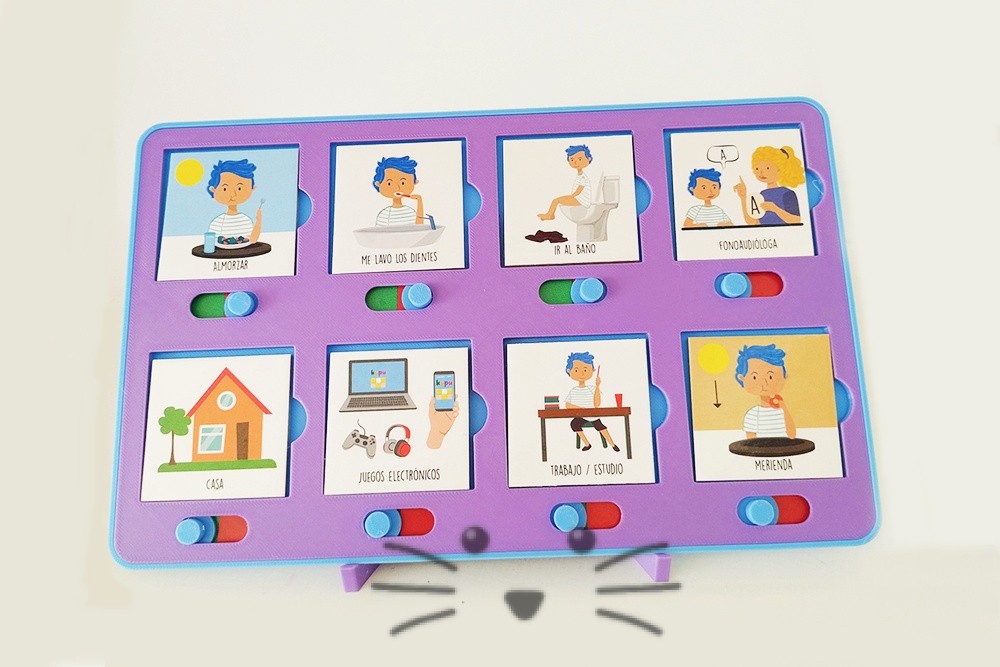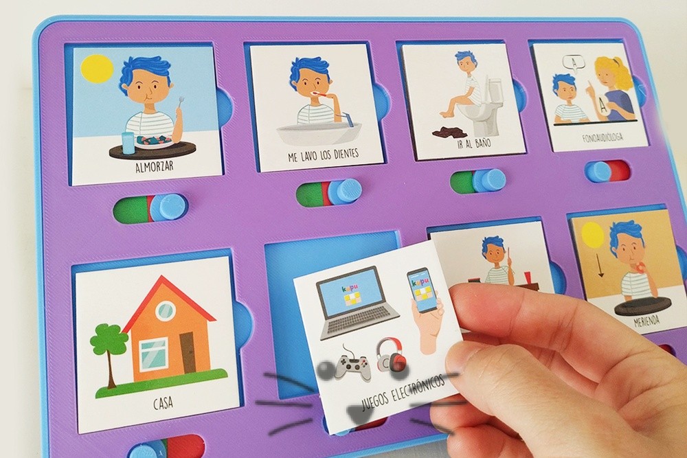 Agenda formato atril para colocar pictogramas con la opción de marcar lo que ya está realizado, otorgando la posibilidad de organizarte, fortalecer la confianza y estructurar tu día. Favorece la autonomía, el lenguaje y la comunicación. Importante: no incluye pictogramas. El atril mide 16 x 26 cm y el espacio para los pictogramas es de 5 x 5 cm.