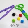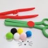 Set de Pinzas para trabajar la motricidad fina, prensión y la coordinación óculo-manual, favoreciendo el desarrollo de la grafomotricidad. Incluye pompones para jugar a atraparlos, una pinza simple y una piza tijera. Material: Impreso en PLA 3D de origen vegetal. Medidas: 16 cm de largo aprox. Colores según disponibilidad.