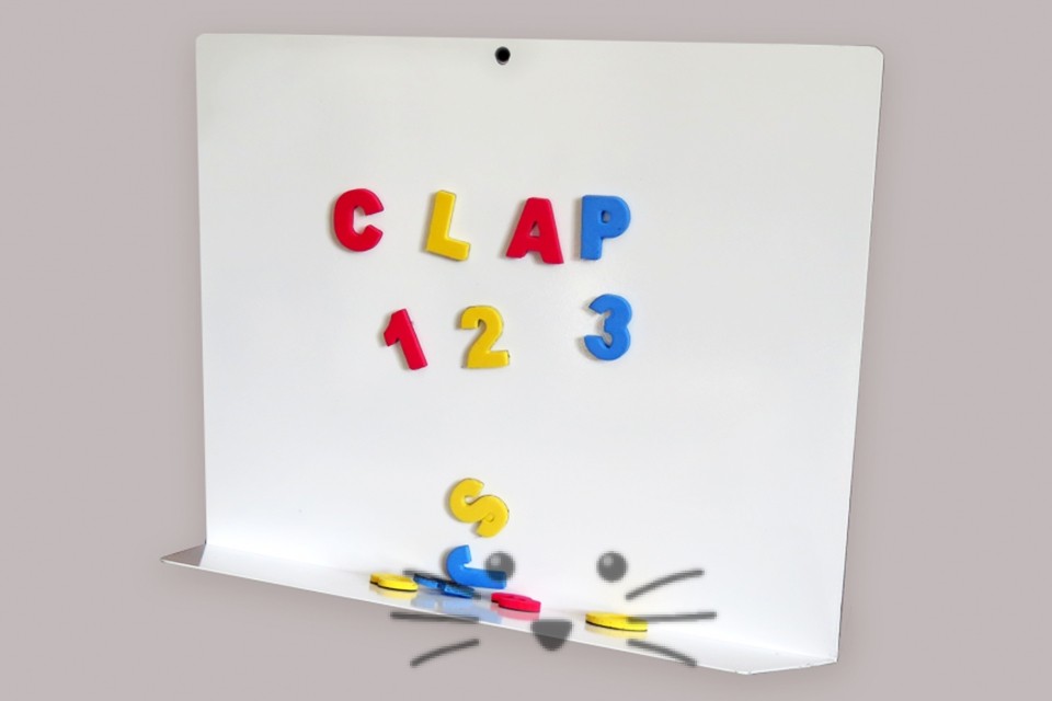 Pizarra metálica para usar con imanes y escribir con marcadores. Para apoyar en el escritorio o colgar de la pared. Incluye: 3 abecedarios y 3 set de números del 0 al 9 de goma eva de 3 mm de espesor imantada.