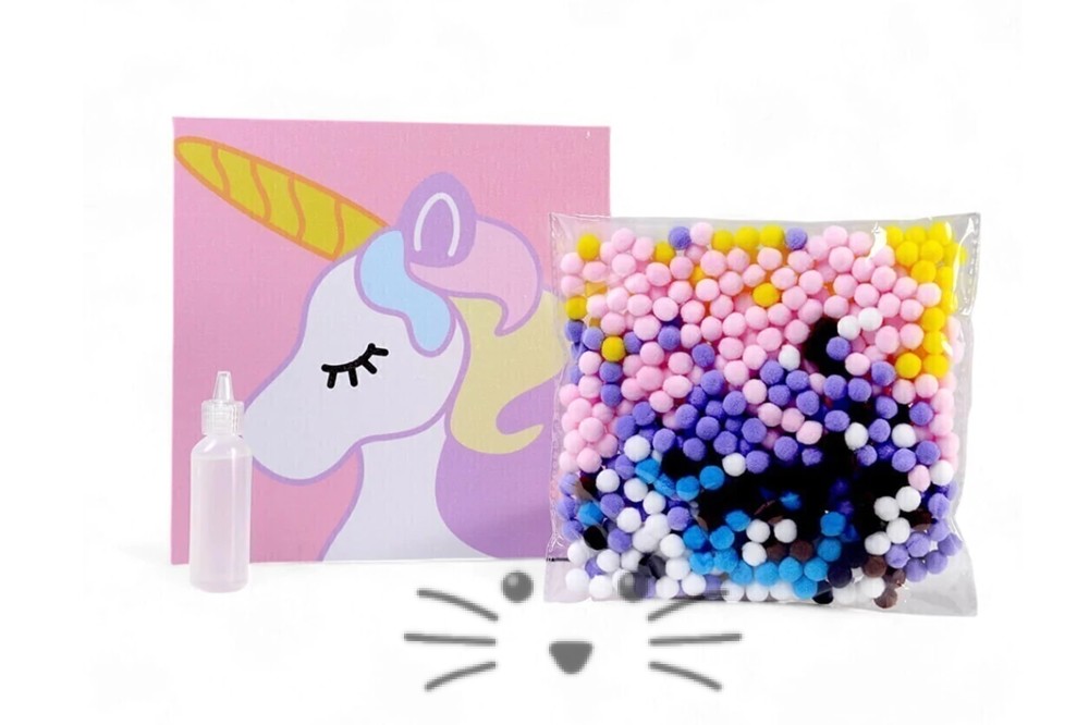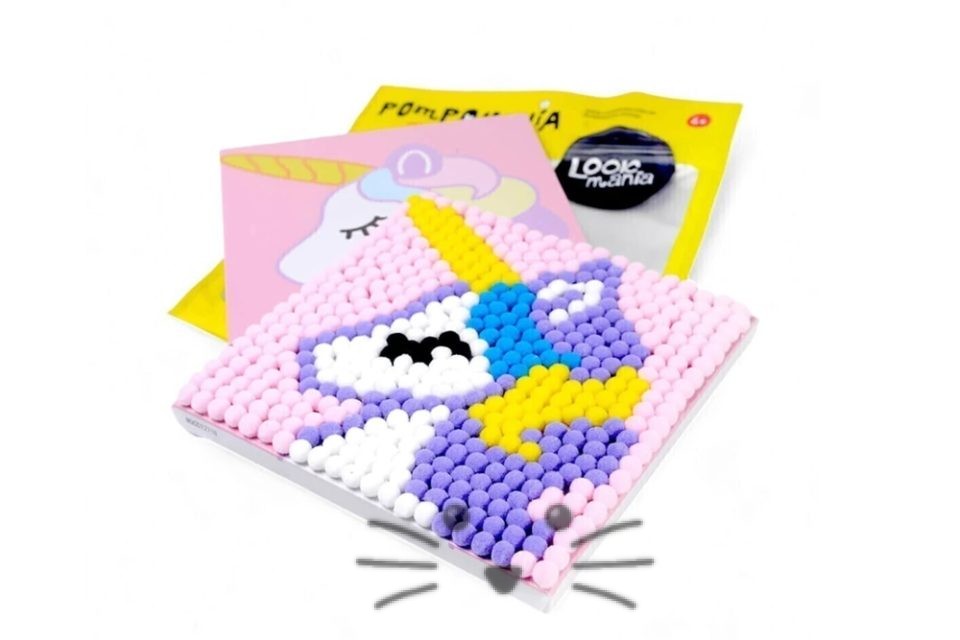 Juego para armar. Este tipo de juegos, estimula la creatividad, la imaginación, la motricidad fina y la relajación. Contiene: 1 Bastidor de 20 x 20 cm, con motivo coloreado. Pompones para realizar el collage de acuerdo al patrón. 1 Cola vinílica. Instrucciones: Uno a uno pega los pompones haciendo coincidir los colores con el motivo elegido. Pegalos juntitos, apretaditos entre sí y obtendrás un efecto suave y tridimensional. Ahora, elegí el rincón que más te guste para lucir tu obra de arte. Edad Sugerida: a partir de 4 años en adelante.