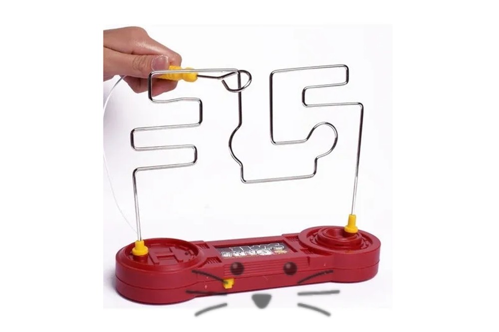 Juego de habilidad para poner a prueba tu pulso. Modo de juego: Asegúrate de que el juego esté montado correctamente, con la base electrónica, la pinza y el circuito metálico. Toma la pinza y prepárate para iniciar el recorrido. Comienza a desplazar la pinza cuidadosamente por el trayecto metálico que forma el circuito. Lo más importante es no tocar el recorrido metálico con la pinza. Si la pinza toca alguna parte del circuito, se activará una alarma y habrás perdido la partida. El objetivo es completar todo el recorrido sin que se active la alarma, superando el reto de equilibrio y concentración. Edad Sugerida: a partir de 5 años en adelante.