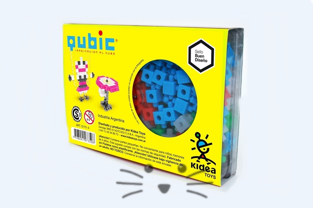 Qubic es un juego de encastre, que a diferencia de otros bloques de construcción, permite crear modelos articulados con una única pieza. Consiste en un cubo de 1×1 cm con dos conectores y miles de posibilidades de crear. Incluye un folleto con ideas para empezar. Se puede jugar solo, con amigos y/o con adultos. Incentiva el desarrollo motriz, la atención, la creatividad y la concentración. Es compatible con otros modelos lo que amplía las posibilidades de construcción.