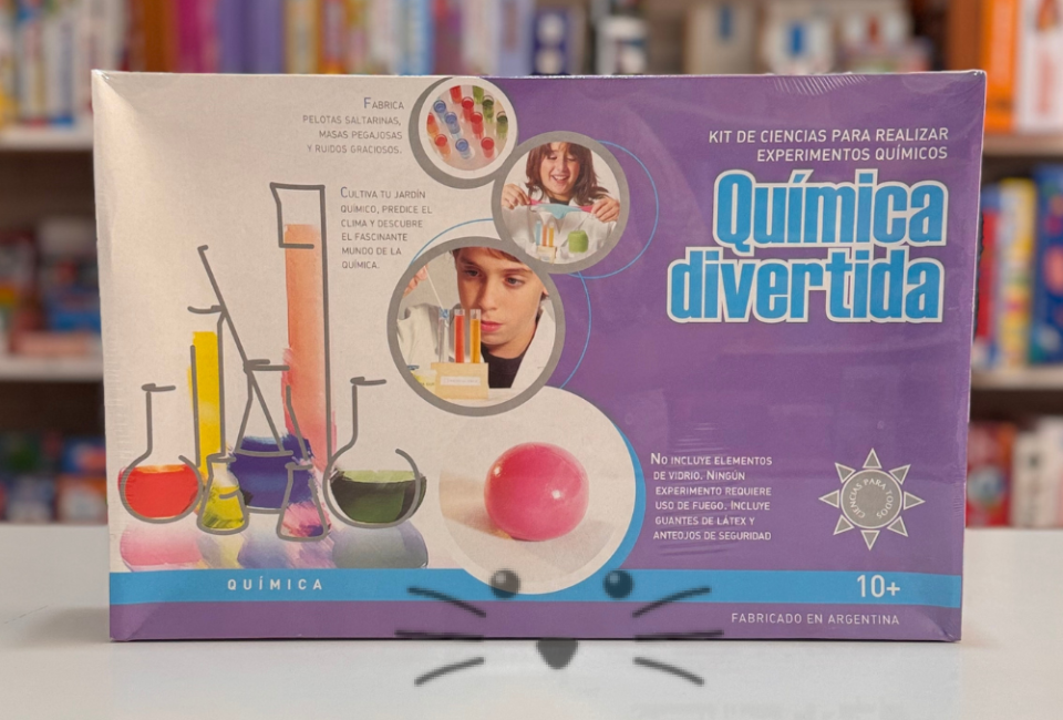 Podrás fabricar pelotas saltarinas, masas pegajosas y ruidos graciosos! Con el kit además podrás cultivar tu propio jardín químico y predecir el clima descubriendo el fascinante mundo de la química. No contiene elementos de vidrio ni es necesario uso de fuego para realizar los experimentos.