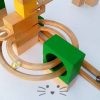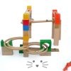 Juego de rampas que permite al niño generar distintas configuraciones generando diferentes desplazamientos de las bolitas de vidrio por las rampas. Fabricado en madera maciza y pintado con pinturas al agua y no toxicas. Edad sugerida: de 4 a 7 años