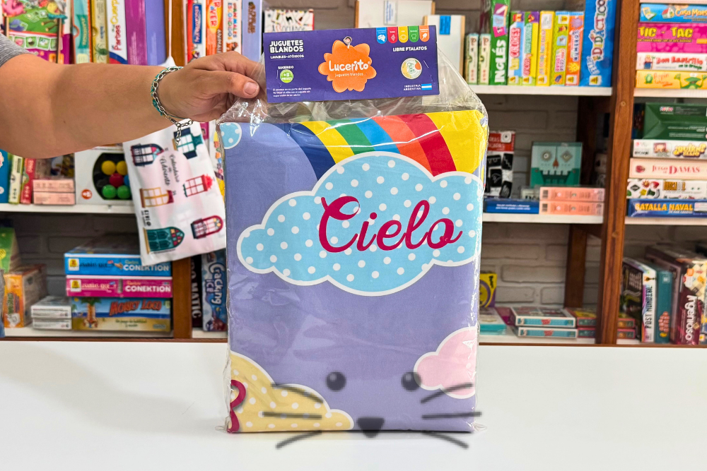 Fabricada con microfibra estampada y base de jersey bondeado. Lavable. Enrollable. Atóxica