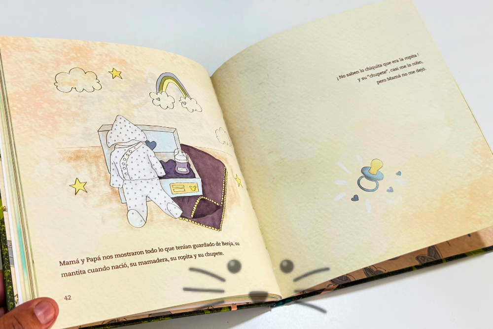 Un libro infantil narrado a través de la imaginación de un niño pequeño y su hermanito. Tratando de entender lo que los padres le dicen de dónde puede estar Benjamín, su hermano que nunca pudieron conocer. La imaginación de un niño puede llegar muy lejos y muchas veces depende de nosotros, los padres, tratar de guiarlos para no ilusionarlos, diciéndoles la verdad por más chicos que sean. Una verdad acorde a su edad, sin lastimarlos y sin asustarlos. Ellos con el tiempo entenderán que esa personita que hoy no está, estará siempre dentro de nuestros corazones.