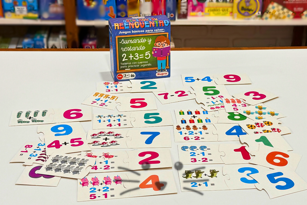 Tarjetones con sumas y restas para asociar con su resultado. Contiene: 20 pares. Para 1 o más jugadores a partir de 5 años