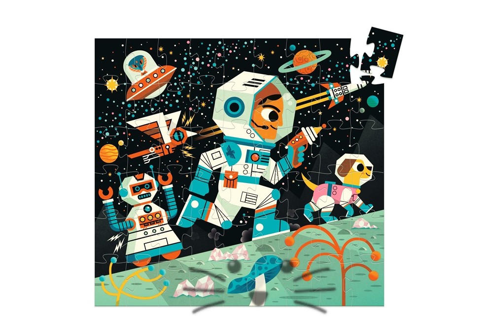 Exploremos mundos interestelares a bordo de la estación DJ3. Un hermoso rompecabezas de 54 piezas en una elegante caja con forma de estación espacial. Caja decorativa, piezas gruesas y grandes que se agarran mejor. Medidas: 40 x 37 cm. Edad Sugerida: a partir de 5 años en adelante.