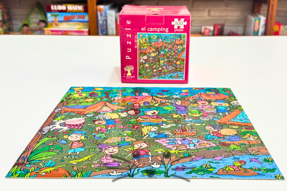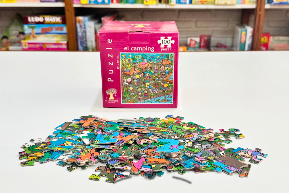 Rompecabezas de corte clásico de 100 piezas + Juego de búsqueda. Hermosas ilustraciones en cartón de alta resistencia. Guardados en cubos originales, decorativos y apilables.