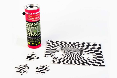 Rompecabezas de 4 piezas de corte lineal fabricado en fibrofácil estampado.