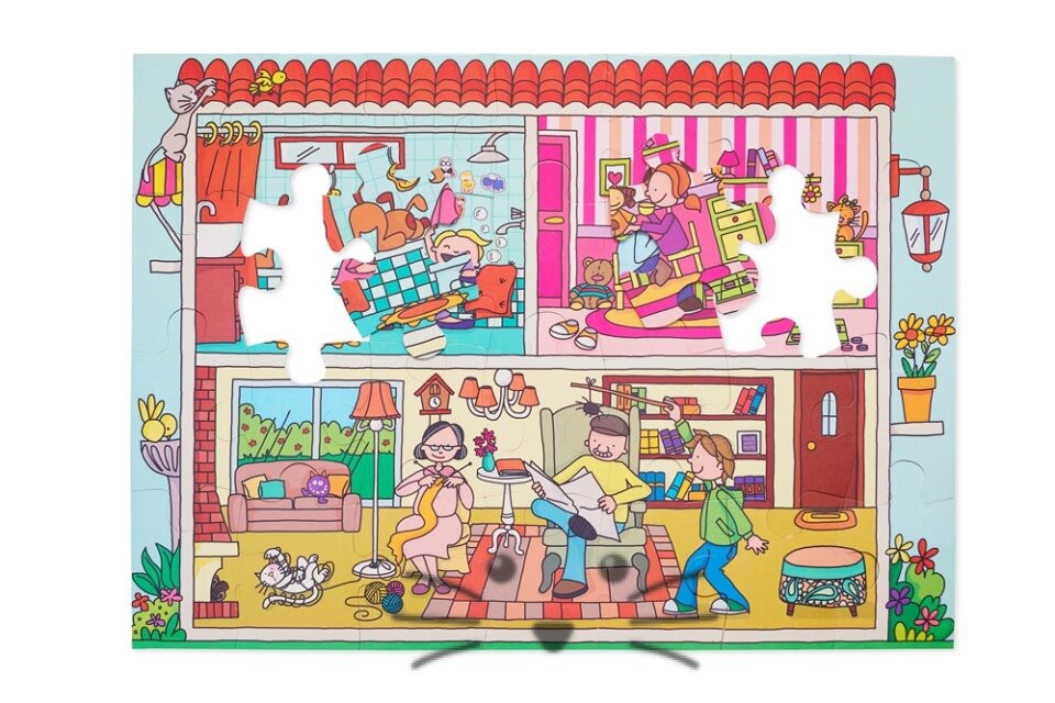 Rompecabezas de piso reversible. Contiene figuras enteras para encastrar y el reverso para pintar. El juego con rompecabezas desarrolla habilidades y destrezas en los niños como la capacidad de análisis y síntesis, percepción, ubicación espacial, motricidad, el pensamiento lógico y la creatividad. Incluye: 28 piezas de cartón extra gruesas Medidas armado: 49×69 cm. Caja: 25x23x10 cm. Edad Sugerida: de 2 a 6 años.