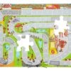 Rompecabezas de piso reversible 3 en 1. El juego con rompecabezas desarrolla habilidades y destrezas en los niños como la capacidad de análisis y síntesis, percepción, ubicación espacial, motricidad, el pensamiento lógico y la creatividad. Incluye: 28 piezas de cartón extra gruesas + crayones + dado y autitos en goma eva para la carrera. Medidas armado: 49×69 cm. Caja: 25x23x10 cm. Edad Sugerida: de 3 años en adelante.