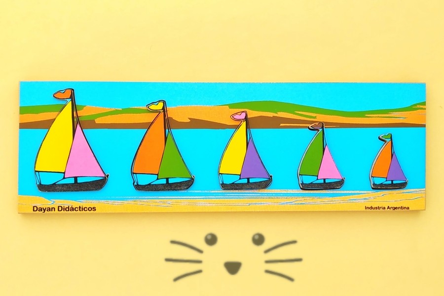 Los juegos de encastre estimulan el desarrollo de la psicomotricidad, el reconocimiento y la diferenciación de formas. Promueven el desarrollo de la atención, la observación, la solución de problemas, y la perseverancia. Los encastres seriados además de desarrollar la psicomotricidad, ayudan a reconocer y diferenciar tamaños y ordenar de mayor a menor o viceversa. Realizado en fibrofácil estampado de 12 mm de espesor, las piezas a encastrar son en relieve para facilitar el agarre del niño. El tablero sobre el que se encastran las piezas mide 36 cm de ancho, 11,5 cm de alto y 1,2 cm de espesor. Edad Sugerida: partir de 2 años