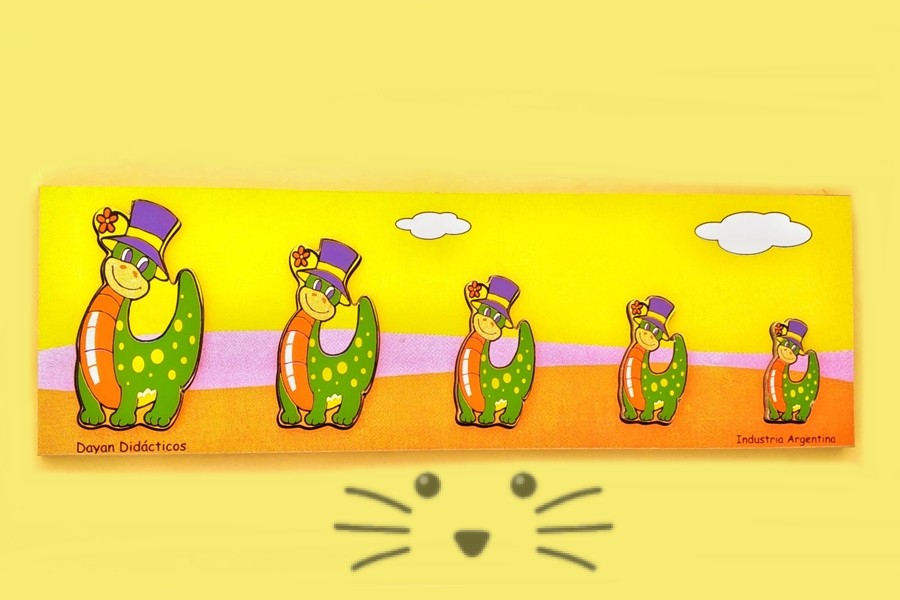 Los juegos de encastre estimulan el desarrollo de la psicomotricidad, el reconocimiento y la diferenciación de formas. Promueven el desarrollo de la atención, la observación, la solución de problemas, y la perseverancia. Los encastres seriados además de desarrollar la psicomotricidad, ayudan a reconocer y diferenciar tamaños y ordenar de mayor a menor o viceversa. Realizado en fibrofácil estampado de 12 mm de espesor, las piezas a encastrar son en relieve para facilitar el agarre del niño. El tablero sobre el que se encastran las piezas mide 36 cm de ancho, 11,5 cm de alto y 1,2 cm de espesor. Edad Sugerida: partir de 2 años