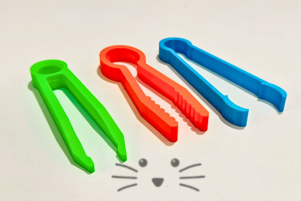 Este set incluye 3 pinzas de diferentes diseños, pensadas para ejercitar distintos tipos de prensión y trabajar la fuerza y coordinación de los dedos.