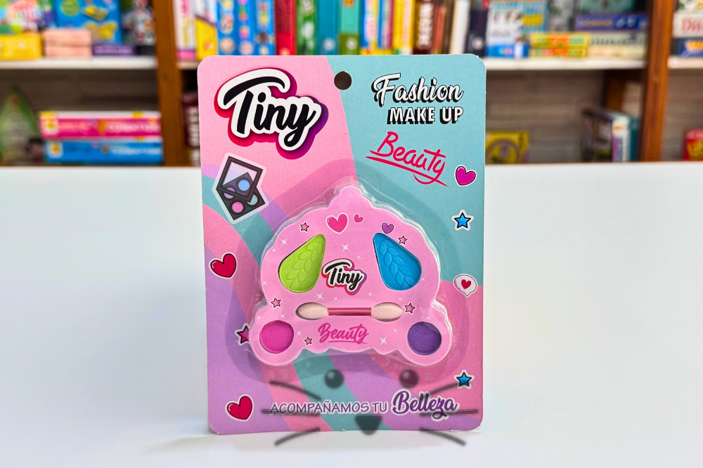 Contiene: 4 Sombras de ojos en cera + 1 pincel aplicador. Es lavable. No tóxico. Certificado como producto seguro. Medidas del maquillaje: 9 x 7.5 cm. Edad Sugerida: a partir de 5 años.