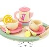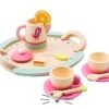 Incluye 15 piezas fabricadas con madera resistente. Incluye: Tetera con tapa. 2 tazas. 2 platos. 2 cucharitas. 1 bolsita de té. 1 rodaja de limón. Y bandeja. Edad Sugerida: a partir de 3 años