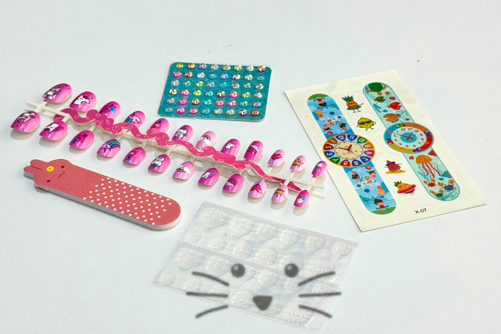 Set de belleza de uñas perfecto para divertirse creando diseños únicos y coloridos. Está fabricado con materiales no tóxicos y es hipoalergénico, asegurando seguridad y comodidad. Es una excelente opción para estimular su creatividad y mejorar sus habilidades motoras mientras juegan. Contiene: plancha de stickers, diamantitos para adherir, lima, plancha de uñas (24 unidades), adhesivo bifaz para colocar las uñas, instrucciones de uso en la caja. Edad Sugerida: a partir de 5 años en adelante.