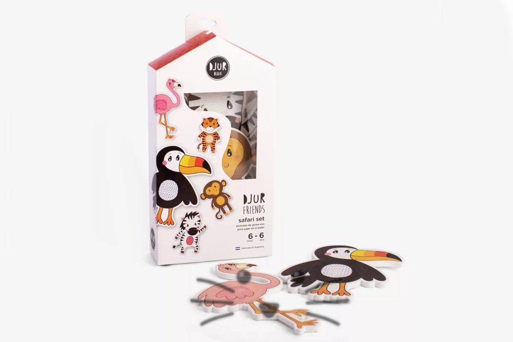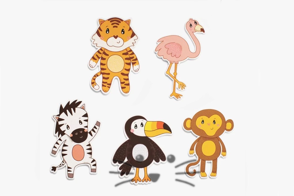 Animales de goma eva para jugar en al agua, se adhieren fácilmente a las superficies de la bañera, vidrio y azulejos con un poco de agua, garantizando risas y diversión sin fin. Fomenta el desarrollo de habilidades motoras y cognitivas. Estimulan la coordinación manual, mientras aprenden sobre formas y colores y estimular su creatividad al inventar historias y aventuras. Incluye 5 animales de 5 mm de espesor: cebra, tucán, tigre, flamenco y mono. Tamaño aprox de 15 x 11 cm. Después del baño es importante secar los animales para evitar la acumulación de bacterias o moho. Certificado como producto seguro y apto para su uso a partir de los 6 meses.