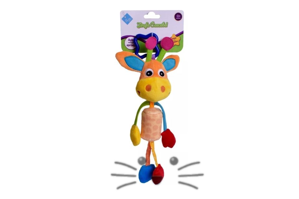 Jirafa suave y blandita con diferentes texturas y colores. Con cascabel. Para agitar y apretar. Medida: 20 cm. Edad Sugerida: a partir de 0 meses