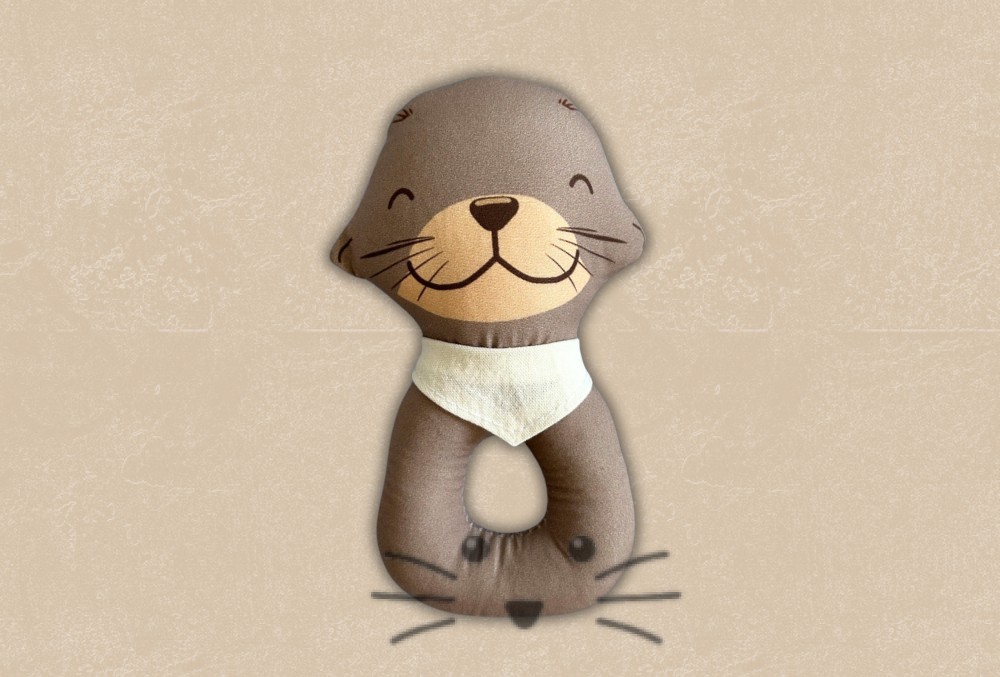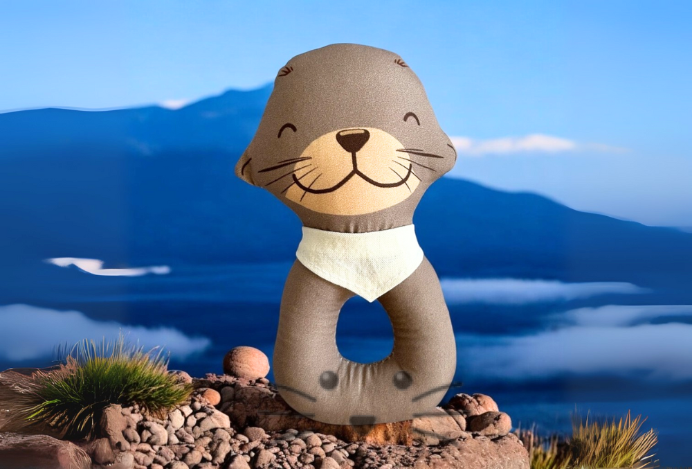 Sonajero en microplana sublimada con bandana de Tusor crudo, relleno de vellón siliconado. Muy livianito y suave! Altura total 15 cm Sublimado derecho y revés