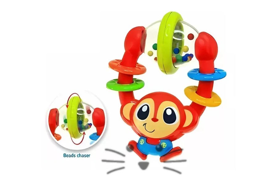 Tierno monito sonajero que emite sonidos divertidos al sacudirlo. También podes ver como se agitan las pelotitas de colores. Permite el agarre fácil, ideal para manos pequeñas. Fabricado en plástico resistente. Materiales 100% seguros para el bebé, sin tóxicos, sin BPA y ftalatos. Medidas: 13 x 10 x 6 cm. Edad Sugerida: a partir de 0 meses.