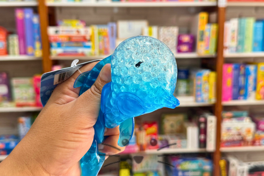 Elemento de descarga sensorial suave y flexible, ideal para apretar, presionar y manipular. Su textura con bolitas internas y su diseño de delfín lo convierten en un recurso atractivo que invita al juego repetitivo y calmante. Favorece la autorregulación emocional, ayuda a reducir el estrés y la ansiedad, y estimula el sentido del tacto. Recomendado para momentos de espera, concentración, relajación o como apoyo en rutinas escolares y terapéuticas.