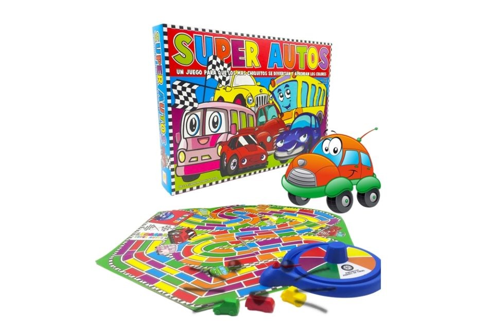 Un juego para que los más chiquitos se diviertan y aprendan los colores Contenido: 1 Tablero de cartón ilustrado, 4 Fichas y 1 Ruleta. Participantes: 2 a 4 jugadores Edad Sugerida: a partir de 4 años.