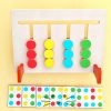 Consiste en un tablero de doble faz calado, con fichas no extraíbles para mover, de un lado las fichas son de colores lisos y del otro tienen imágenes de frutas. Incluye 12 fichas donde se presentan diferentes combinaciones de colores y de frutas para que el niño represente en el tablero, para lo cual tendrá que mover las fichas varias veces hasta encontrar la ubicación deseada. El tablero incluye dos piezas que sirven de base para encastrarlo, quedando sostenido de forma vertical, ideal para trabajar sobre la mesa. Medidas: 20 x 28 cm. Edad Sugerida: a partir de 4 años.