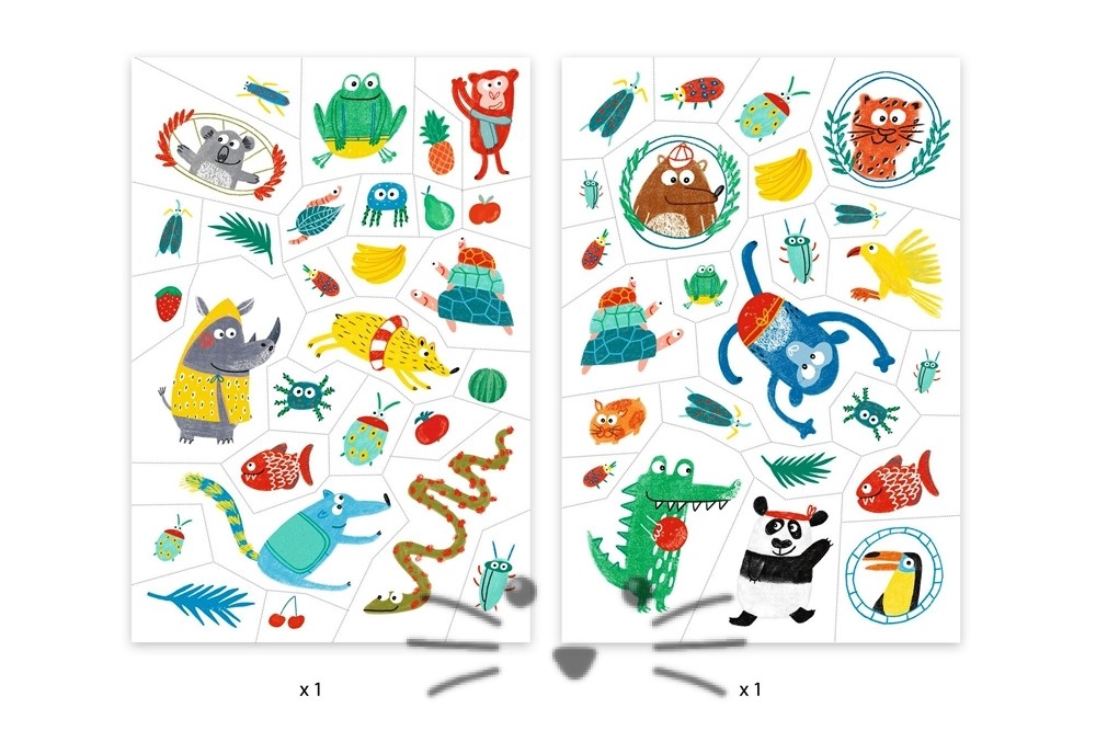 Dos hojas de calcomanías con animales graciosos y divertidos. Son fáciles de usar, ya que se presentan precortadas y se aplican con un poco de agua. Dermatológicamente probado. Edad Sugerida: a partir de 3 años en adelante.