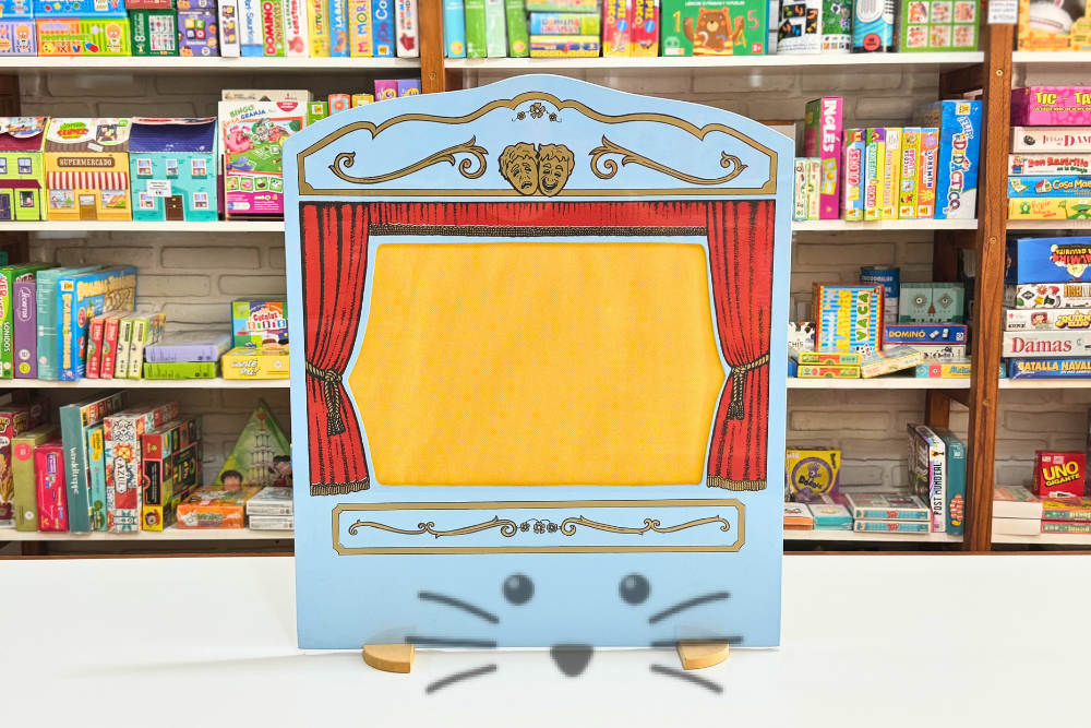 Teatro de madera para títeres de mano o de dedo. Fomenta la creatividad y el juego en familia. Ideal para estimular la imaginación y creatividad de los niños. Es fácil de montar y desmontar, lo que facilita su almacenamiento y transporte. Material: madera pintada con detalles en diferentes colores. Incluye cortina de friselina para colgar y tapar el fondo. Color: Azul. Medidas: 52 x 1 x 60 cm. Edad Sugerida: a partir de 3 años en adelante.