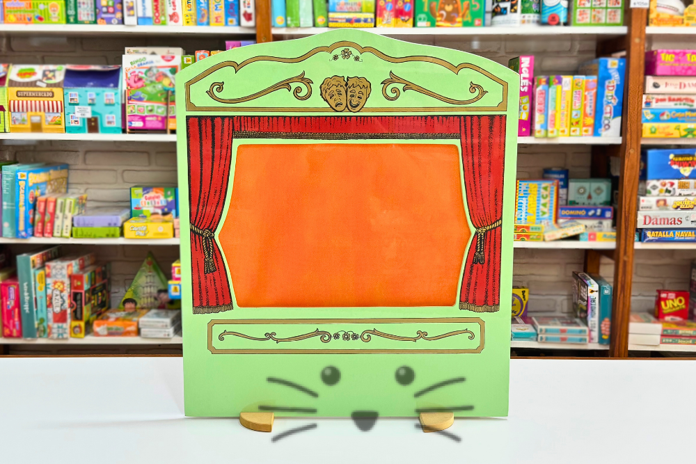 Teatro de madera para títeres de mano o de dedo. Fomenta la creatividad y el juego en familia. Ideal para estimular la imaginación y creatividad de los niños. Es fácil de montar y desmontar, lo que facilita su almacenamiento y transporte. Material: madera pintada con detalles en diferentes colores. Incluye cortina de friselina para colgar y tapar el fondo. Color: Verde. Medidas: 52 x 1 x 60 cm. Edad Sugerida: a partir de 3 años en adelante.