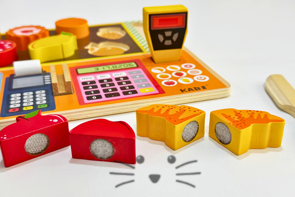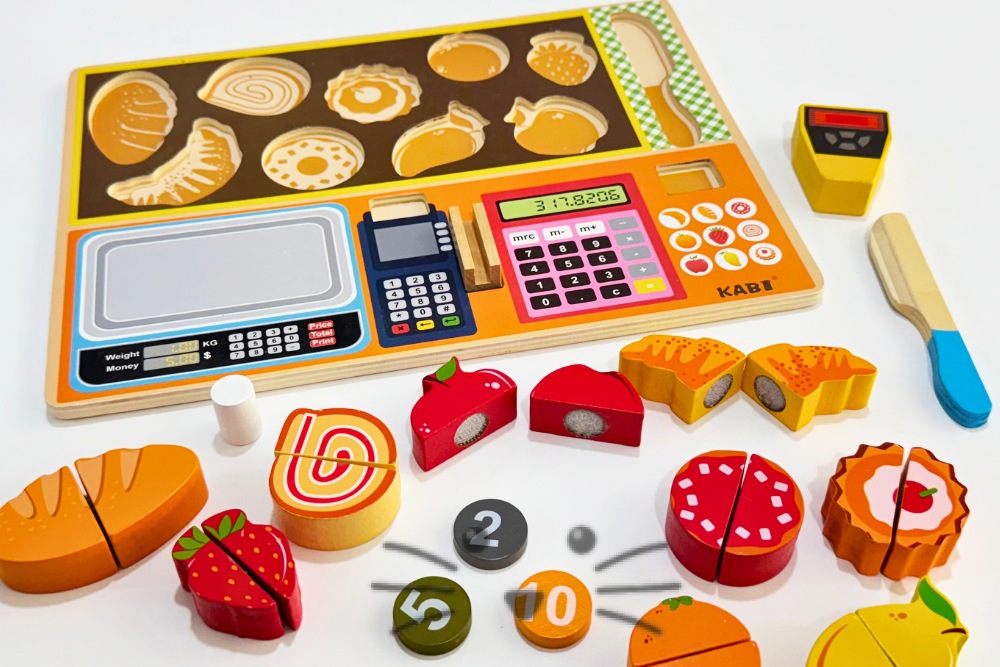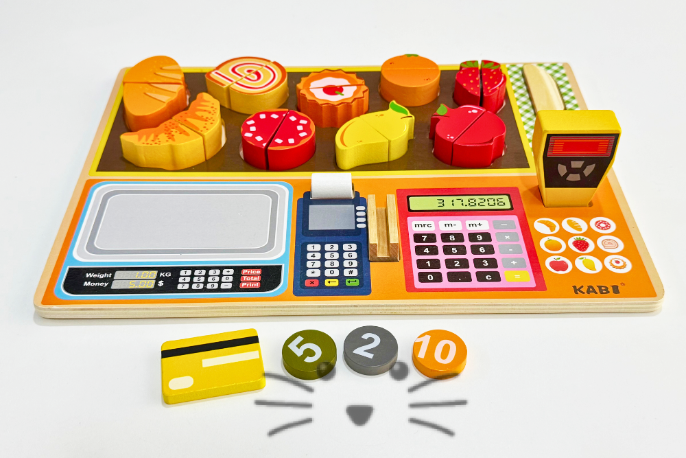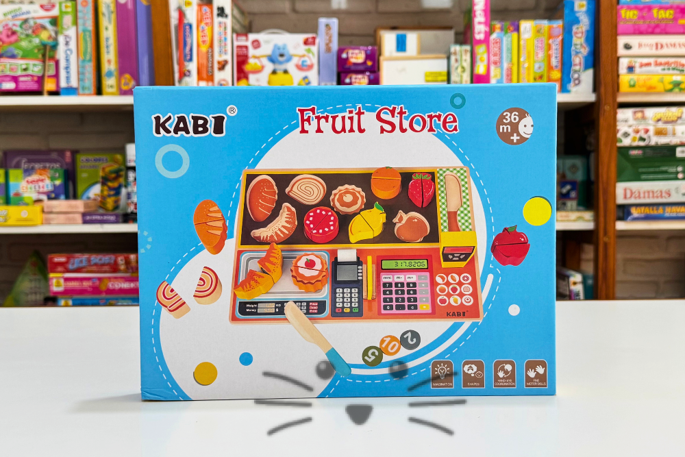 Un juego de madera lleno de color y aprendizaje. Incluye frutas, panificados y postres para “cortar” con velcro, una balanza, calculadora, dinero y utensillos, invitando a los niños a crear su propia tienda y disfrutar del juego simbólico. A través de esta propuesta, los chicos desarrollan la coordinación mano-ojo, practican conteo, operaciones simples y uso del dinero, y fortalecen la imaginación y el lenguaje al recrear situaciones cotidianas. Ideal para jugar en familia, en el aula o en espacios de estimulación.