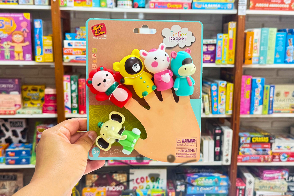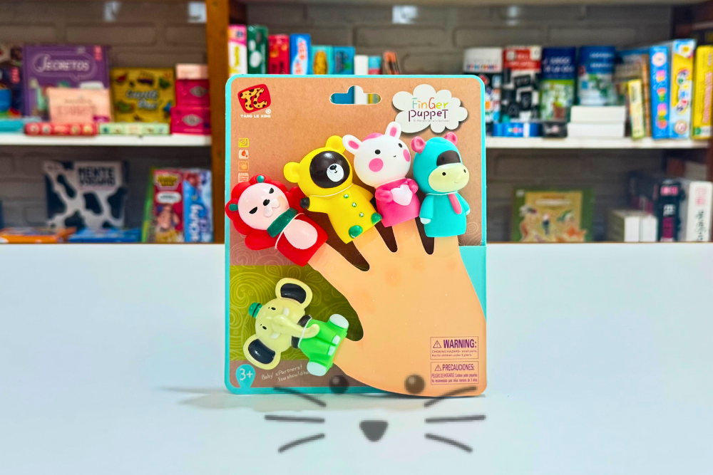 Un adorable set de títeres de dedo de goma, suaves y coloridos, ideales para estimular el juego, la imaginación y el desarrollo del lenguaje en los más pequeños.