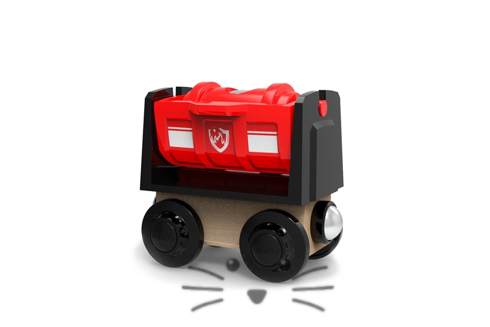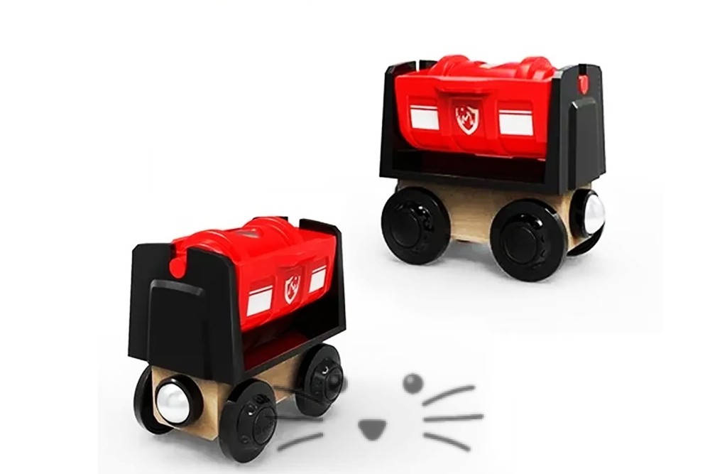 Por medio de su sistema de acople magnético son los acoplados por excelencia de todos los vehículos de Trencity. Incluye un leño. Su diseño corresponde a la línea Colección Bomberos.