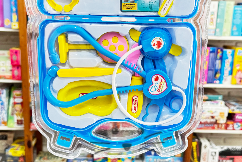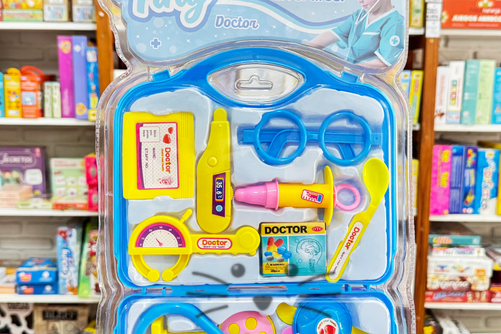 Juego de rol ideal para que niños y niñas exploren el mundo de la medicina. Incluye cuchara, estetoscopio, palillos, termómetro, tijera, pinza y accesorios que invitan a imaginar, crear historias y asumir distintos roles. La valija se pliega y se cierra para poder transportar todos los elementos a donde desees.